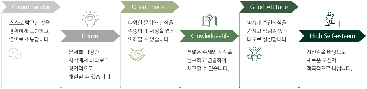 자기주도적인 사람인 동시에 남을 배려하며 공감하고 협동하는 Global Leader로 성장합니다.